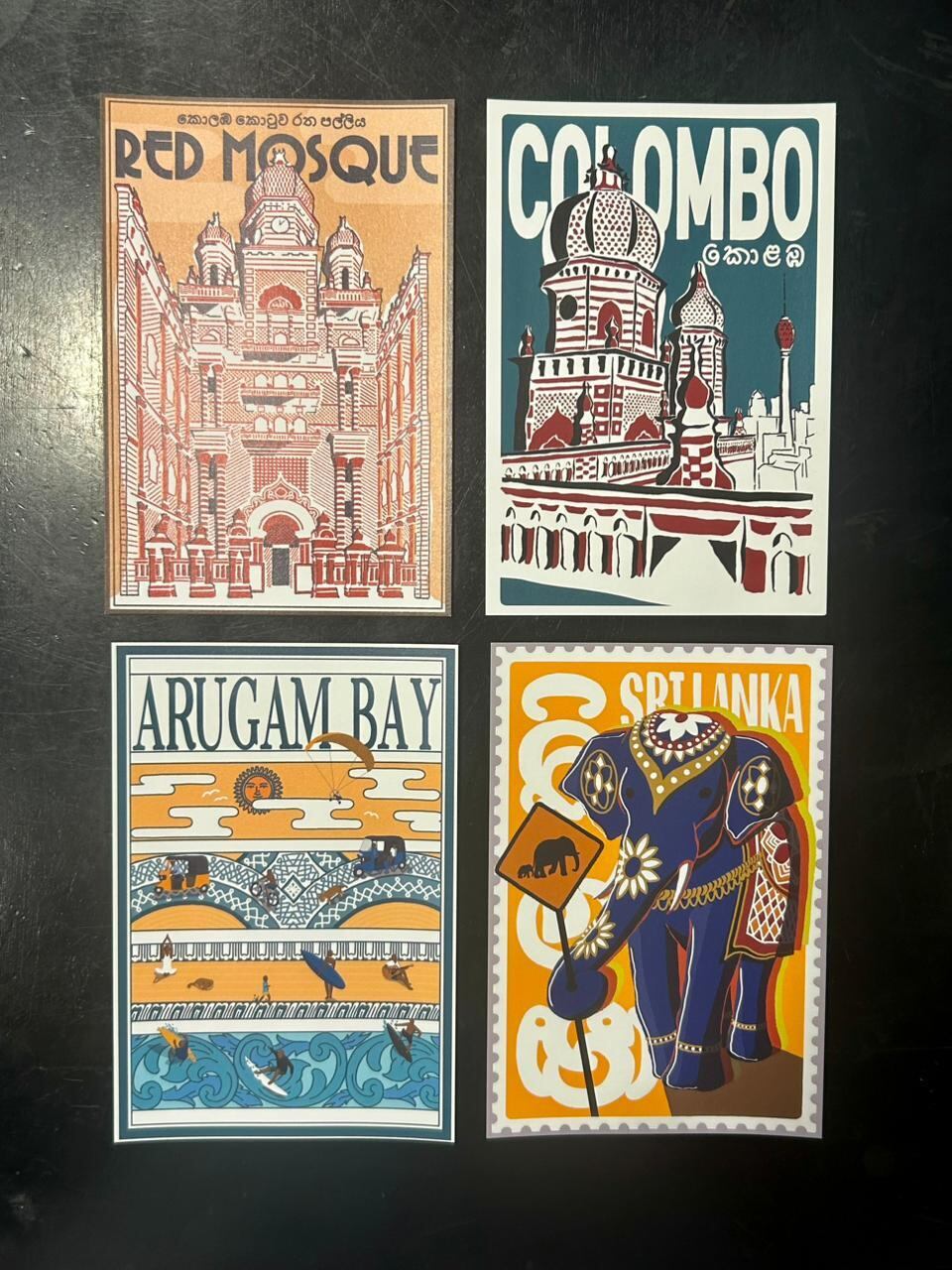レッドモスクの屋上から見えるコロンボの街並み。ザクロをイメージしたモスクのドーム越しに、街の象徴であるロータスタワーがそびえ立ちます。コロンボの雰囲気を一目で感じられる風景を切り取りました。眺めるだけでも、旅の記憶がよみがえるデザインです。